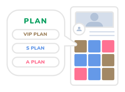お試しプランでは写真だけ配信、VIPプランでは写真に加え、会員限定のスペシャルな動画を配信するなど、プラン別でコンテンツを配信できる!
